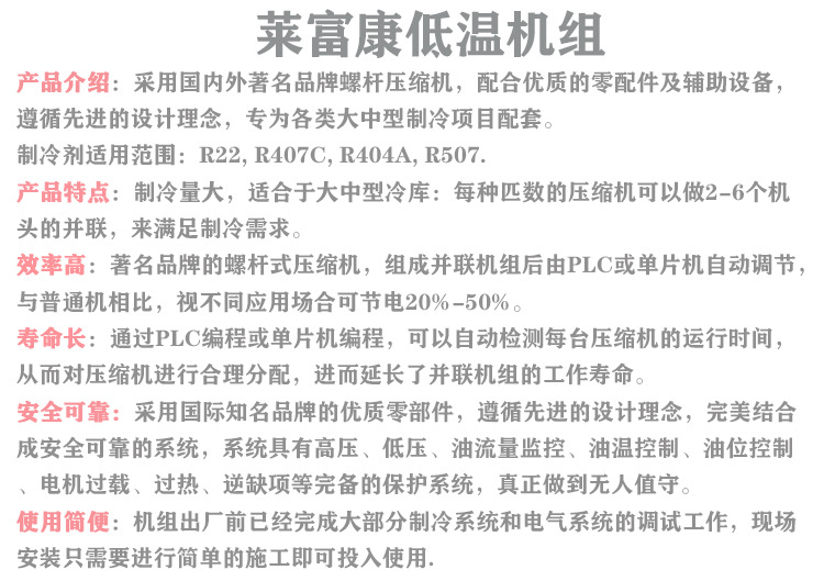 关键词:莱富康,冷冻冷藏制冷机,商用制冷设备