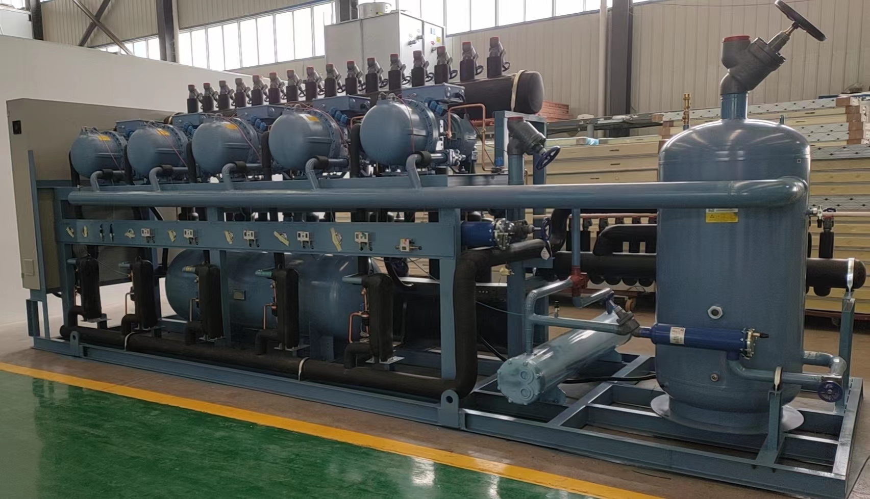 螺杆式并联机组易于使用,操作方便,耐用可靠,具备电机保护、高低油位监控、排温度监控、压缩机反转、过热、过载、喷液冷却等保护功能,保证压缩机在高温、中低温工况完全胜任,针对工业制冷应用场合,能够高速平稳运行,故障容忍度高。